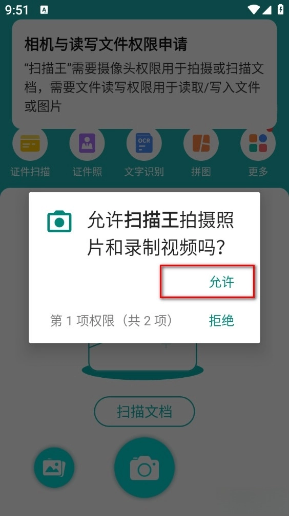 进入软件后点击中间相机图标开始扫描