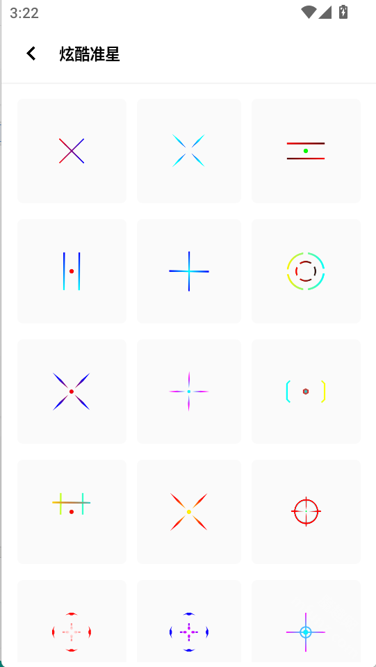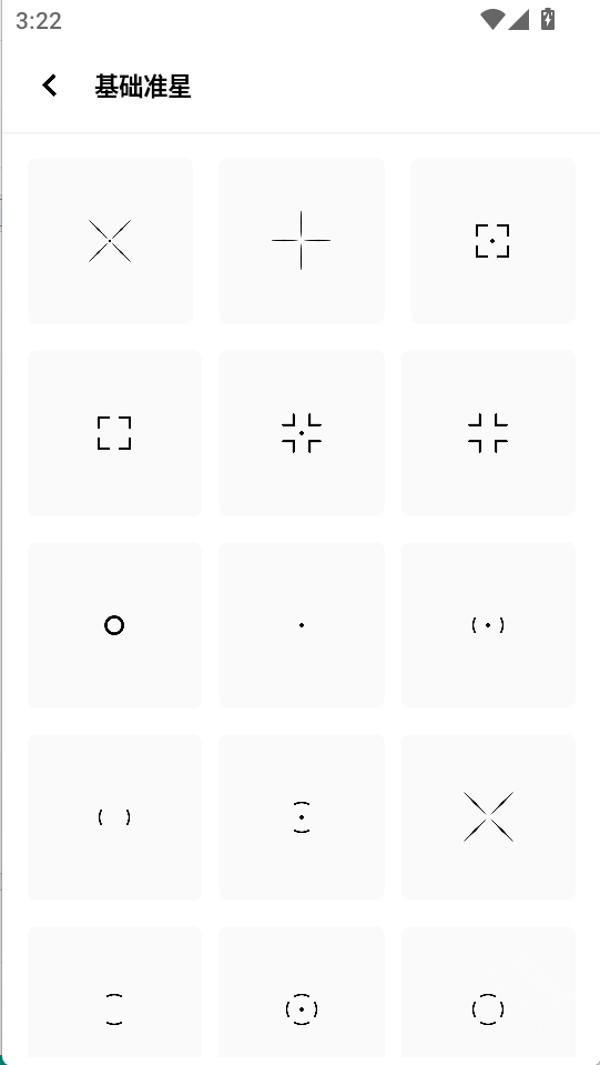 点击底部第三个图标“准星”即可开启准星样式功能,该功能支持基础准星、炫酷准星、发光准星、圆形准星、线性准星等多种样式选择。