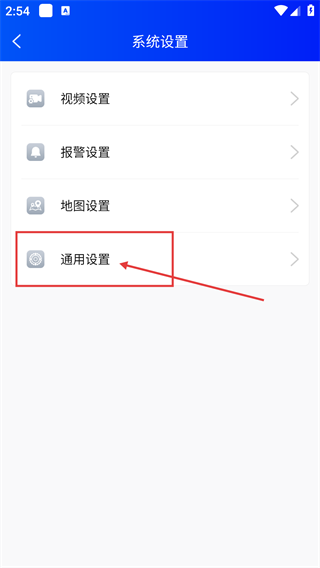 进入【系统设置】页面后,可选择【视频设置】、【报警设置】、【地图设置】等选项,点击【通用设置】即可进入对应的配置界面。