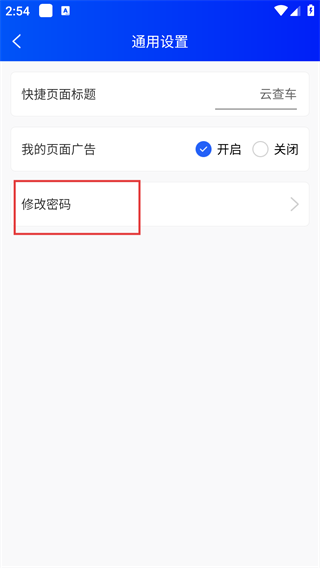 进入【通用设置】页面后,你可以切换【我的页面广告】的开关状态,也能点击【修改密码】选项,从而完成账号密码的更新流程。