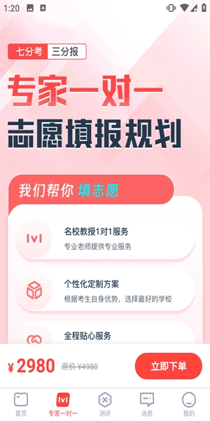 专家一对一服务支持课程购买,您可通过该服务与专家进行一对一交流,由专家协助您规划并填报志愿。