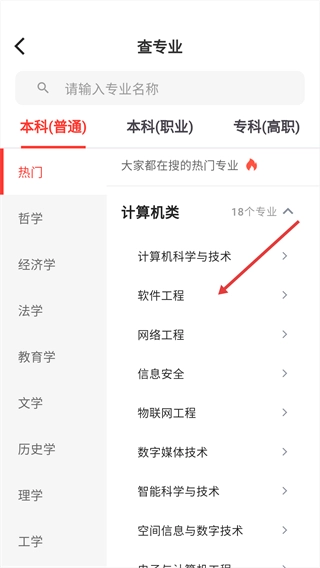 选择具体专业,进入该专业的详情页面。