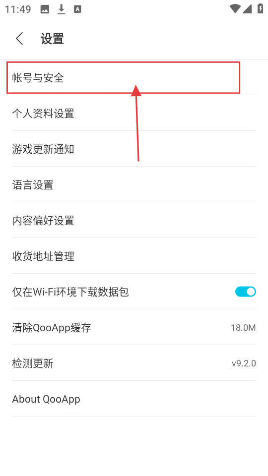 在设置页面里,点击【帐号与安全】选项,就能进入对应的页面,查看和账号安全有关的各项设置啦。