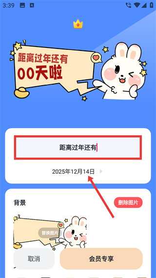 在组件库的“精选”标签页中,找到“距离明年过年还有XX天啦”样式的组件,点击进入该组件的编辑界面。
