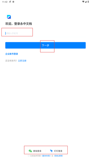 若您是企业用户,请点击“企业账号登录”选项,输入您的手机号或邮箱以及对应的登录密码,勾选相关协议后点击【登录】按钮,即可进入企业文档管理界面。