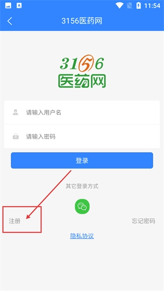 在【3156医药网】的登录界面,选择【注册】按钮,即可跳转至新账号的注册页面,以便进行注册信息的填写。