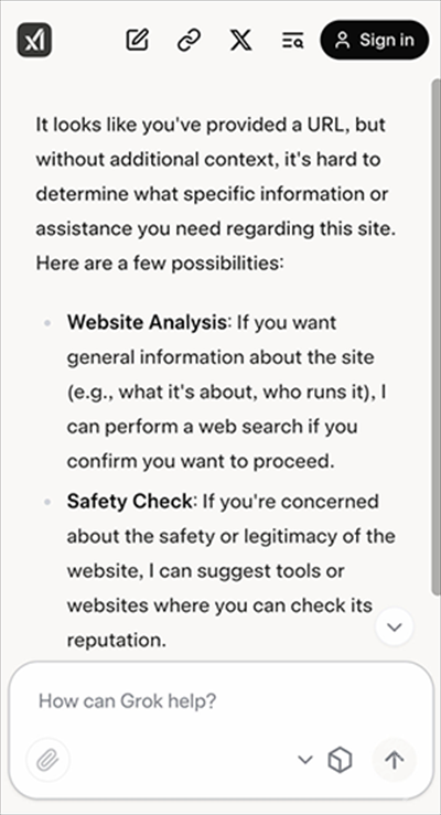 grok是什么意思?grok是马斯克推出的一款AI软件,也被叫做grok ai、马斯克的免费grok,目前已经开放免费使用了。而且grok3大模型发布后,grok就被业内称作最聪明的AI。要是问grok和deepseek相比如何,网友给出的答案是grok是最强AI,能够超越deepseek和gpt-4。马斯克的免费grok暂时是免费开放的,还不用登录,不需要注册账号就能直接使用。