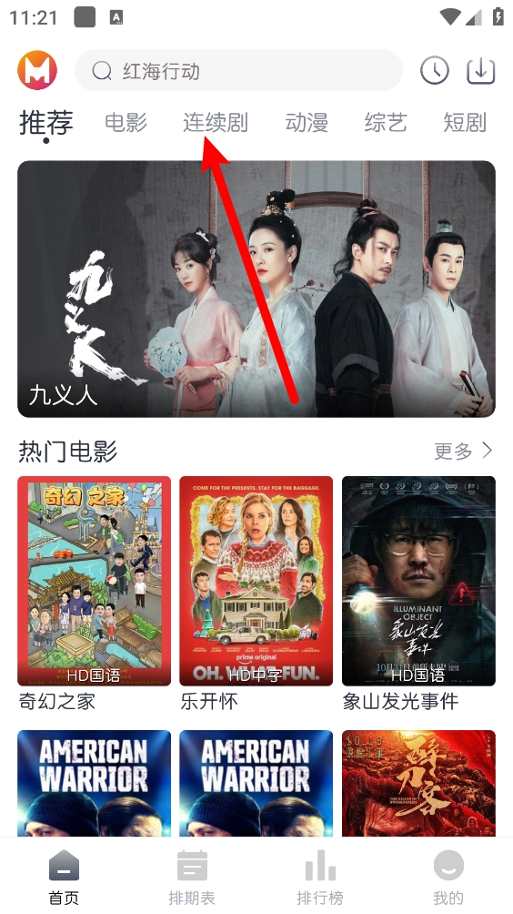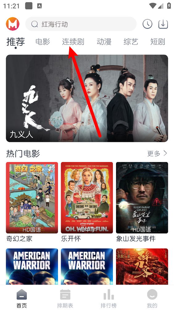 打开软件,点击"连续剧",如图。