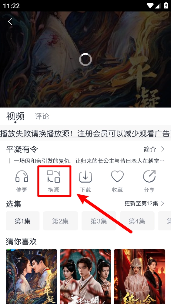 然后进入播放详情页,点击"换源"。