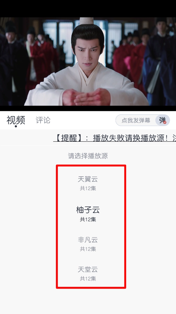 如图,根据所需选择并点击对应的播放源即可。