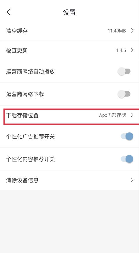 进入设置界面后,在系统参数设置列表中找到【存储位置】选项并点击,即可进入存储路径选择页面。