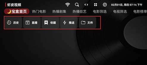 软件安装完成后,点击进入首页,首页设有观看历史、直播、收藏、推送等多种栏目功能。