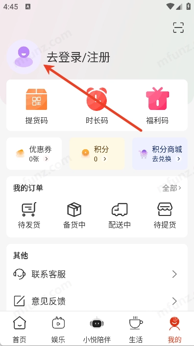 3、选择去登录/注册