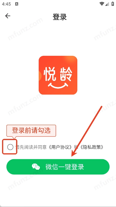 4、勾选相关协议按钮后,点击微信一键登录就能完成操作(新用户会自动注册为新账号)