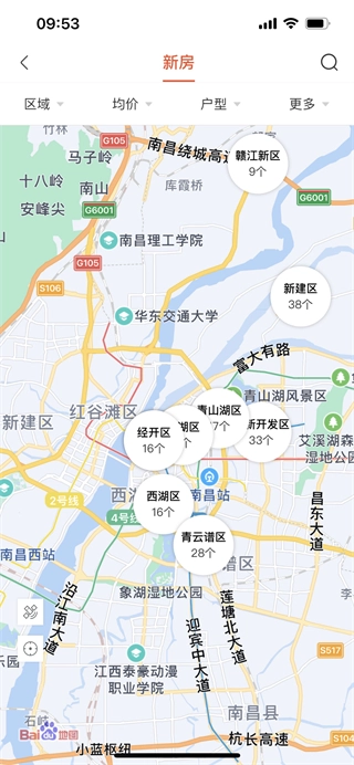 5、地图找房能够查看你周围区域的房区。