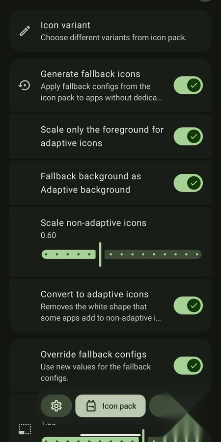 全局图标包软件与许多同类图标包修改软件的区别在于,它能够让手机全局范围内的图标都替换成修改后的样式——无论是手机桌面、通知栏、设置界面还是其他任何显示图标的地方,都会统一变成修改后的图案!
