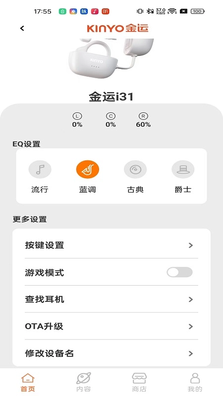 金运耳机是一款实用的蓝牙耳机管理工具。借助这款软件,用户可以直接对已连接手机的蓝牙耳机进行音量、声道、通话、播报、触摸反应等多项设置,帮助耳机达到最佳使用状态。功能选择十分便捷,通过触屏操作即可完成各类设定,为用户带来诸多便利,感兴趣的朋友不妨来体验一下吧。