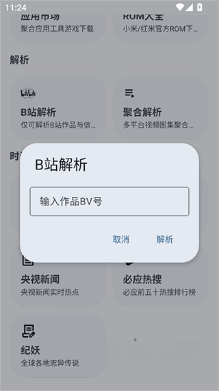 1、启动应用后,在功能栏或工具界面里找到并点击需要使用的工具,像B站视频解析这类功能就可以这样操作。