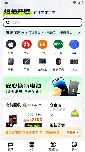 拍拍严选作为专注于二手产品交易的专业应用,致力于让用户以极具性价比的价格获取优质二手商品。无论用户是想入手Apple、华为、小米、三星等品牌的二手电子产品,还是计划出售个人闲置物品,该应用都能全面满足需求,通过一站式服务解决用户在二手买卖环节中遇到的各类问题。