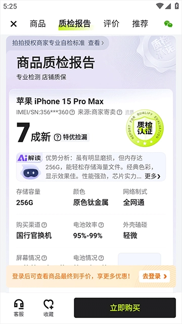 3、就能看到商品的质检报告了