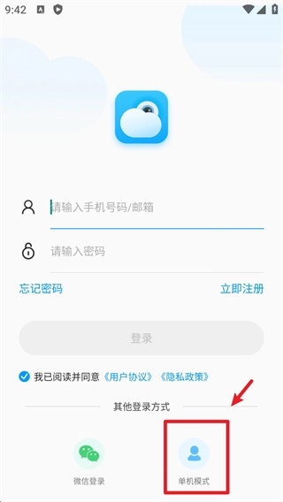 2、点击页面底部的“单机模式”,即可进入无需注册、能快速体验的设备连接流程。