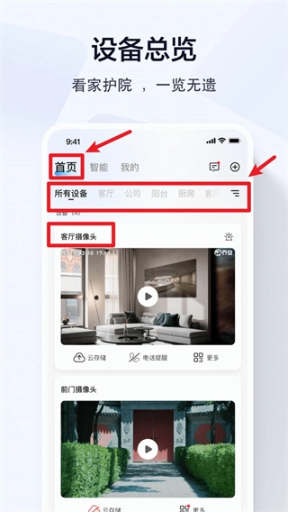 可以随时查看家中、商铺、办公室等各类场所的实时视频与云端录像,管理起来十分便捷。