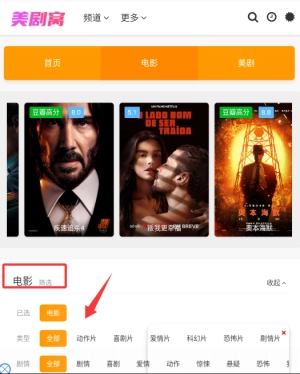 2、切换到电影页面后,可按照动作片、喜剧片等不同类型进行筛选,以便查找《疾速追杀4》这类影片。