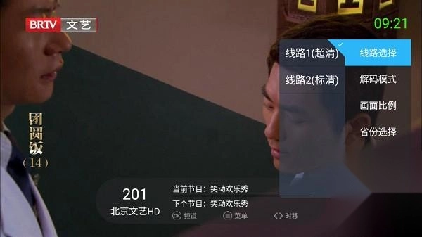 3、若用户使用安卓手机观看,轻点屏幕即可弹出频道列表、线路选择及解码方法菜单;若在电视上操作,则需按下遥控器的OK键来调出上述菜单。