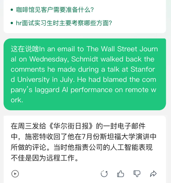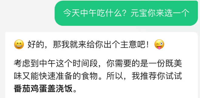 2. 直接输入你想要对话的内容即可,举个例子,像打工人常纠结的问题:今天中午吃什么?