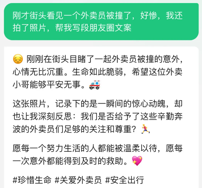 3.要是你偶尔想发朋友圈却不知道配什么文案,也可以让腾讯元宝来帮忙。