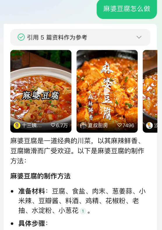 c.怎样烹制美味佳肴:无论什么菜品都能询问,不仅会提供详细的烹饪步骤,还能为你找到对应的做菜视频。