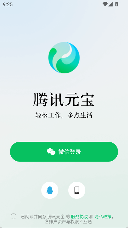 1. 把腾讯元宝安装到手机上后,通过微信、QQ或者手机号来登录