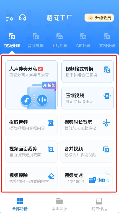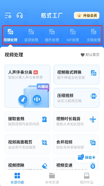 3、选择转换格式:挑选对应的格式,比如若要转换视频,点击“视频处理”后再选择所需的功能。