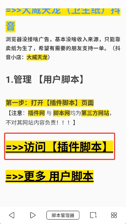 进入后点击“访问【插件脚本】”选项,浏览工具插件列表来查找所需的插件。