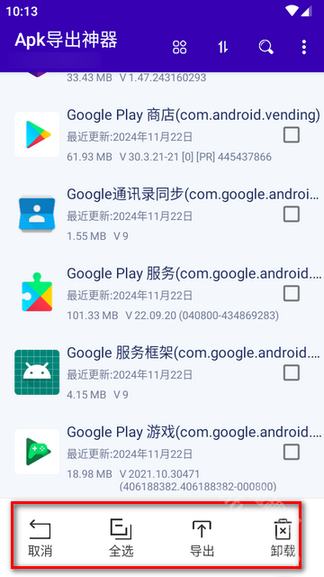 APK导出神器具备批量管理手机应用的功能,用户能够挑选多个应用来执行提取操作。