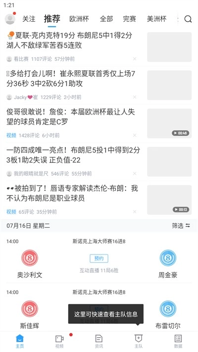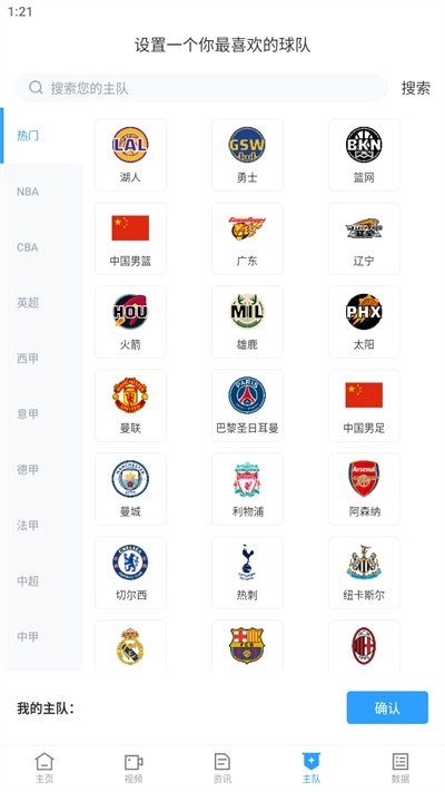 5、点击主队选项可以选择自己球队获取相应的信息。