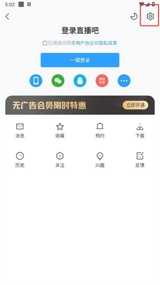 1. 打开直播吧应用,在主界面左上角找到并点击“头像”按钮 2. 进入个人中心页面后,点击右上角的“设置”图标