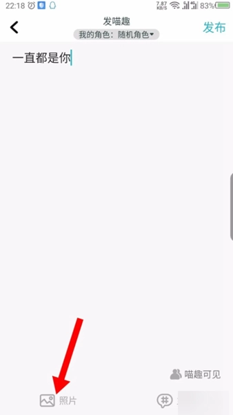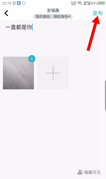 3、打开发喵趣界面,默认使用随机角色发布。