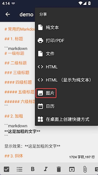 4、导出分享文档:编辑工作结束后,能够直接将文档转换为PDF或HTML格式,这样更方便通过社交软件或者邮件发送给其他人员。