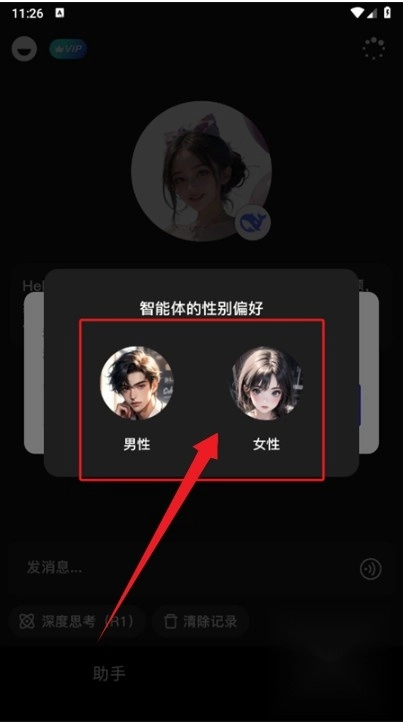 2、选择AI智能体性别,打造个性化聊天体验。