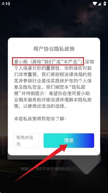 1、打开星幻阅读协议并点击同意进入下一步。