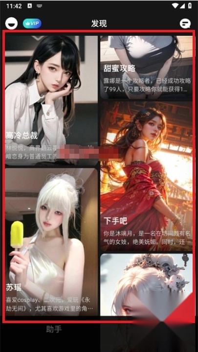 4、在“发现”页面可以浏览各类丰富的AI角色,以此来增加互动时的选择范围。