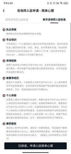 如果是新手咨询师入驻的话条件就要稍微简单一些。