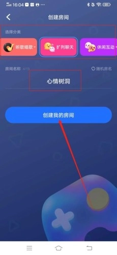 在创建房间页面,先选定房间分类、编辑好房间名称,再点击页面下方的“创建我的房间”按钮。
