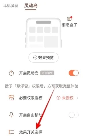 2、点击效果开关选择按钮。