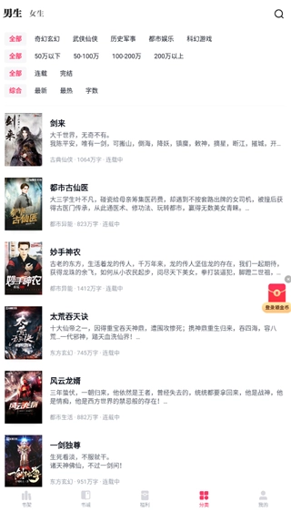 4、分类板块涵盖了奇幻玄幻、武侠仙侠、历史军事、都市娱乐、科幻游戏、古代言情、幻想时空、悬疑灵异、耽美同人、短篇美文等各类小说。
