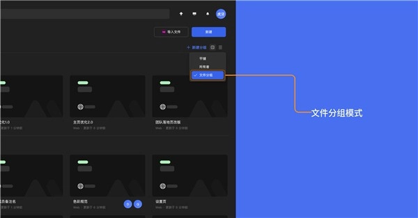 通过将文件设置分组的方式,可以根据团队或个人的需要,在项目内对文件设置相应的分组,通过选择文件分组模式,文件会按照设置好的分组进行归类显示,起到对文件进行整理的作用。可以根据“平铺”模式、“所有者”模式、“文件分组”这三种模式来选择切换自己所需要的文件显示方式。