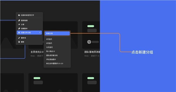 方式2:可通过在项目内在文件上方右键弹窗中,选择“设置文件分组”-“新建分组”按钮创建分组。