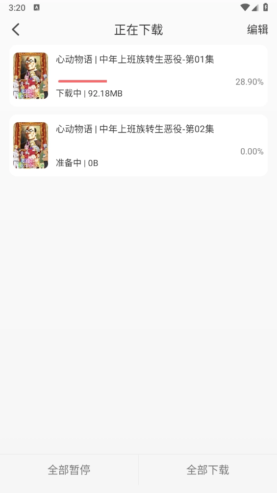 5、进入后就能查看剧集的观看进度,进度完成后就可以进行离线观看了。