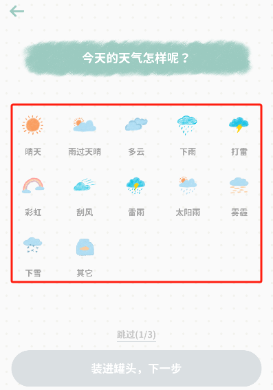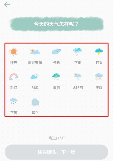 3、处于编写状态时,需选择记录日记当天对应的天气状况。
